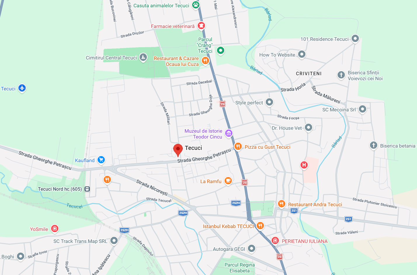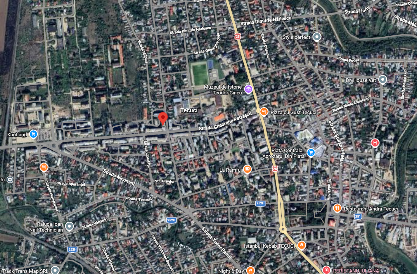 - Adresă: Municipiul Tecuci, Strada Ecaterina Teodoroiu, bloc M1, etaj 3, județul Galați