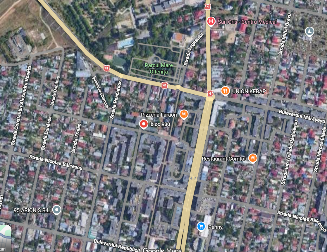 - Localizare: municipiul Oltenița, zonă rezidențială mixtă (blocuri + case), Oltenița, jud. Călărași, Str. Prof. Dr. Fl. Mandache