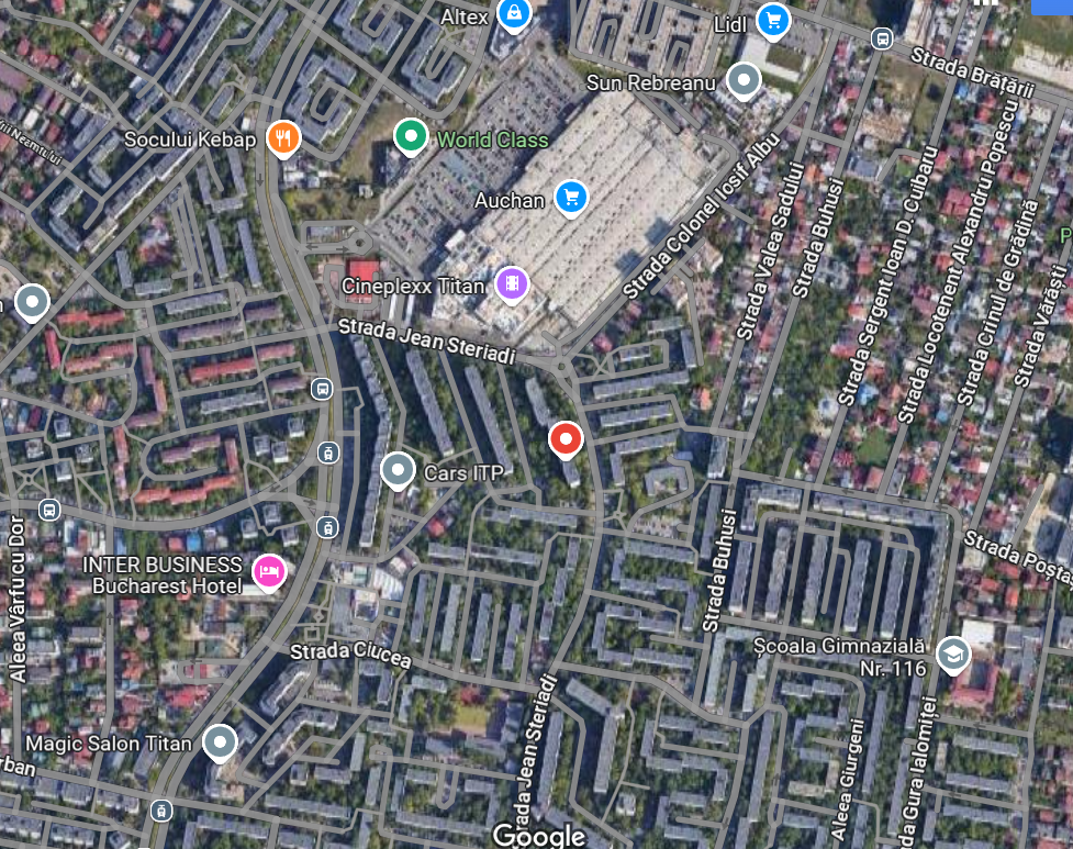 Apartamnetul se afla amplasat in zona mediana a mun. Bucuresti, cartier Titan, in vecinatatea centrului comercial Titan, cu acces din str. Jean Steriadi.