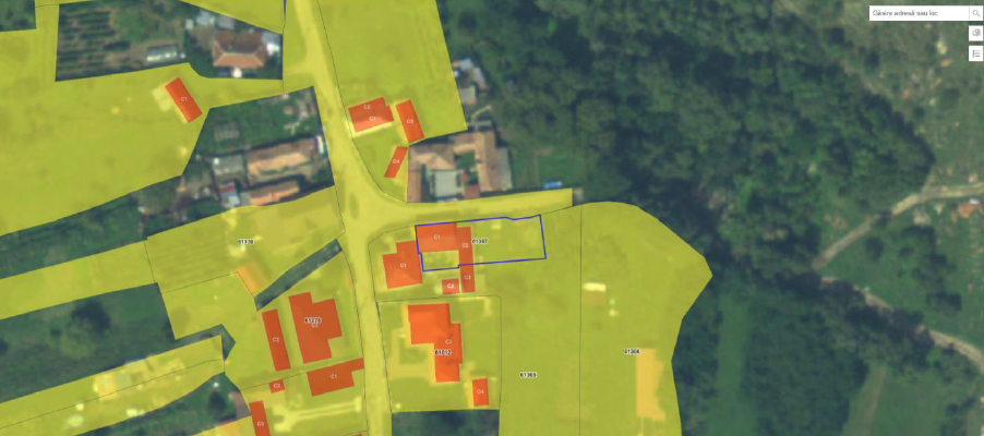 Teren intravilan, categoria de folosinta curti constructii, in suprafata de 419 mp. imprejmuit cu gard, avand topografie plana, forma poligonala si constructiile: