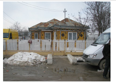 Imobil compus din teren intravilan categ. curti-constructii, in supraf. de 350 mp. si constructia C1- locuinta, in supraf. construita de 142 mp. si utila 123,34 mp. in regim de intaltime P, formata din patru camere, un hol, o bucatarie, o baie, cu finisaje medii, tamplarie exterioara din lemn cu geam simplu, tamplarie interioara din aluminiu cu geam termopan, pardoseli cu parchet in camere si gresie pe hol, baie si bucatarie, pereti placati cu faianta in bucatarie si baie, construita din caramida, centuri din beton armat, acoperita cu tabla, incalzirea se face cu sobe de teracota pe lemne.