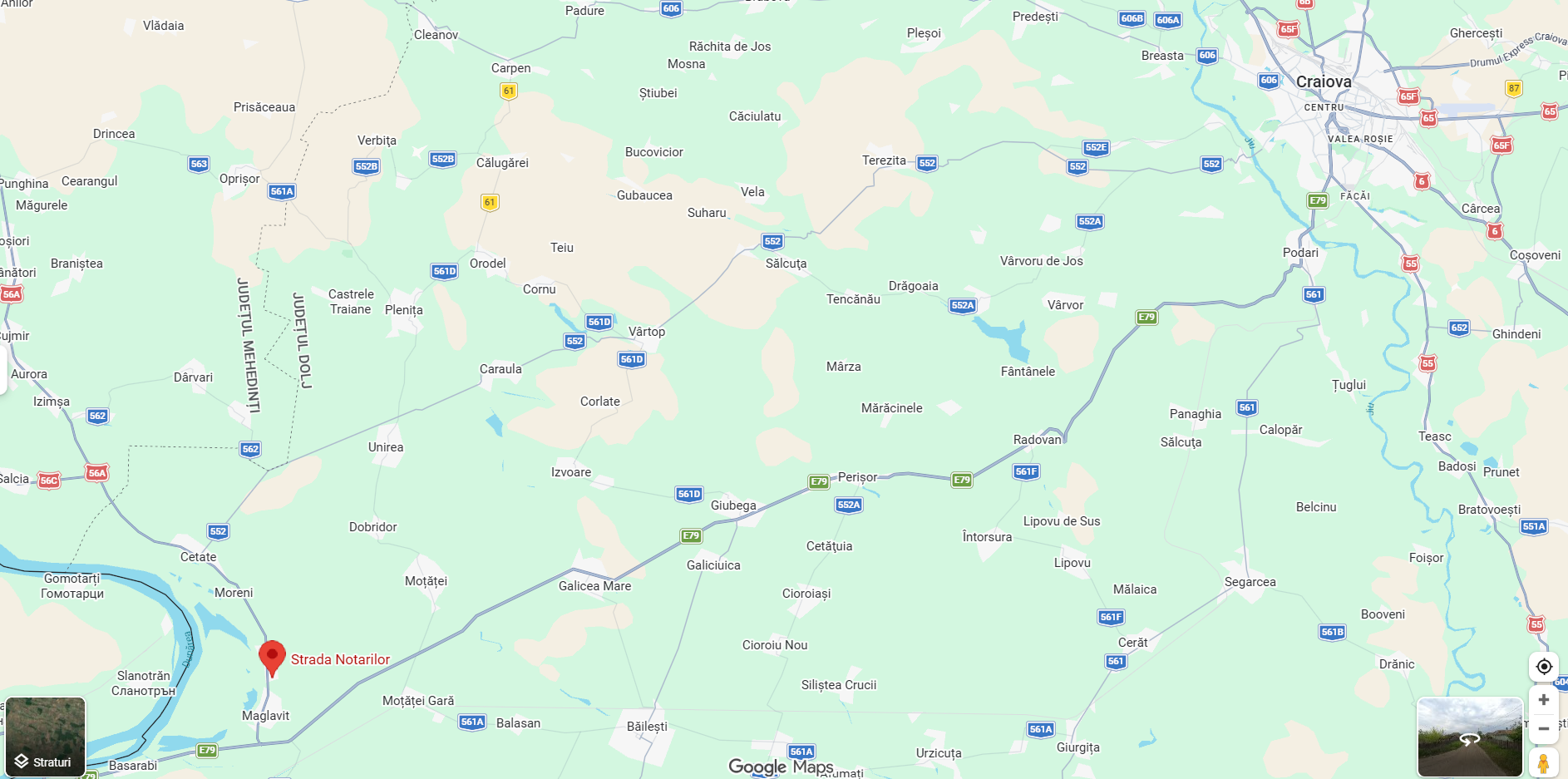 Proprietatea se află în Comuna Maglavit, Sat Hunia, jud. Dolj, pe Strada Notarilor.