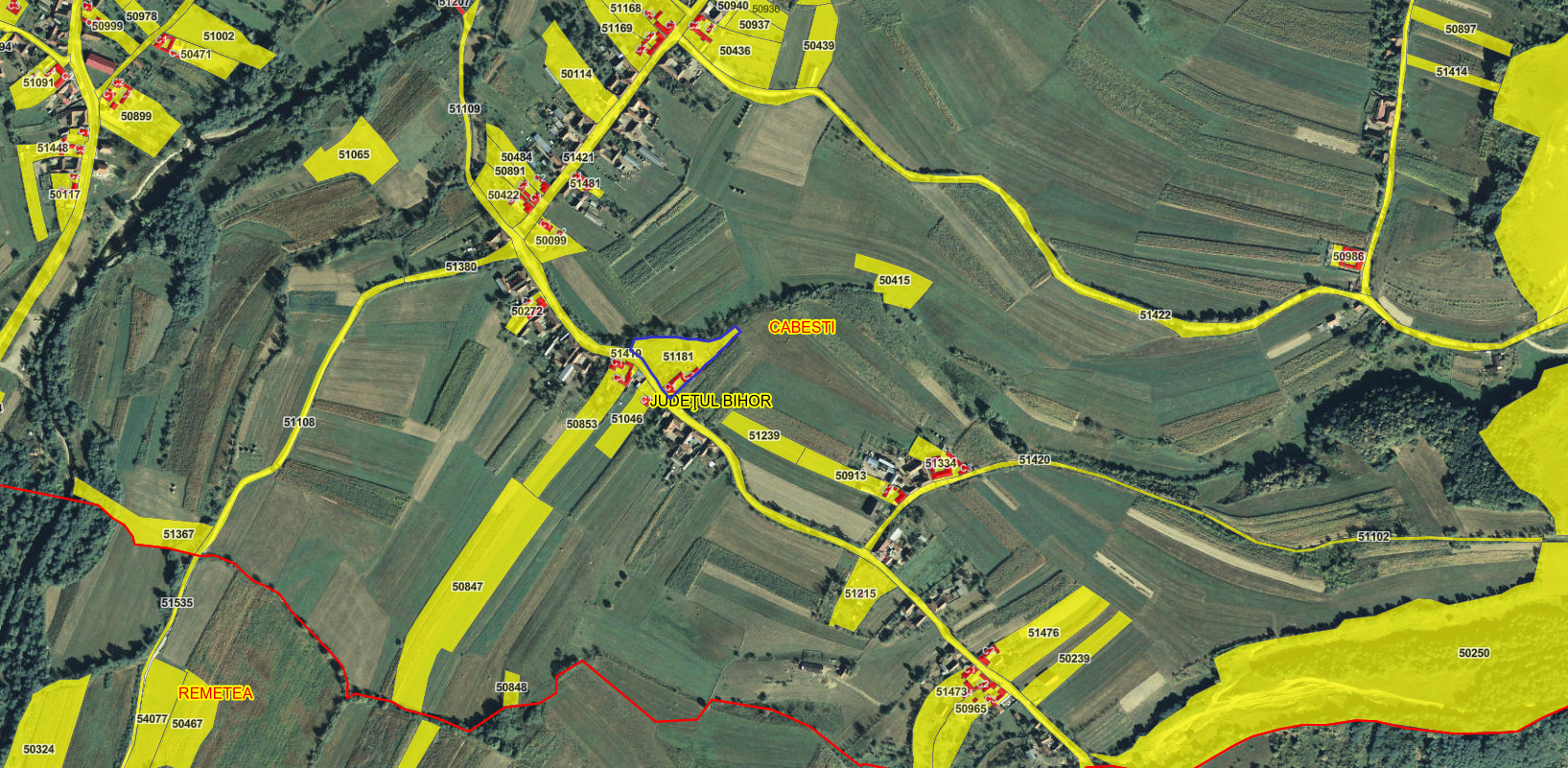 Proprietate imobiliara compusa din casa si teren situata in comuna Cabesti, sat Gurbesti, Jud. Bihor, TEREN Intravilan in suprafata de 3.863 MP + C1 + C2 + C3,