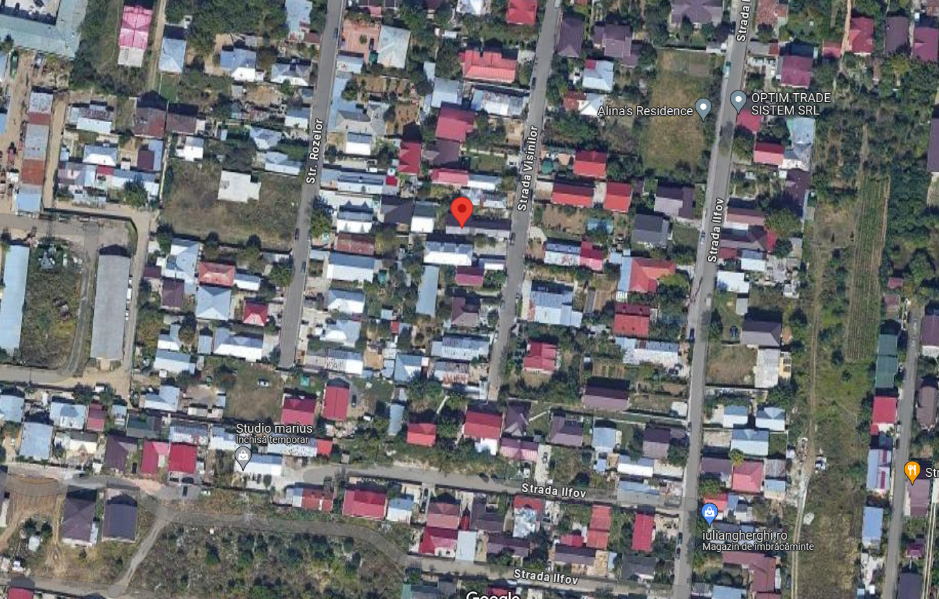 Proprietatea imobiliara, compusa din casa cu regim de inaltime P, avand suprafata construita la sol de 76,67 mp si suprafata utila de 65,95 mp, cu urmatoarea compartimentare: camera=13,32 mp, camera=13,91 mp, camera=16,32 mp, bucatarie=10,25 mp, baie=4,20 mp, vestibul=7,95 mp. Terenul are forma dreptunghiulara, cu deschidere de 3,85 m la strada Visinilor, cu un culoar adanc de 26,87 ml, dupa care, terenul se largeste la o latime de 13,62 ml si o lungime de 14,65 ml. Terenul este imprejmuit la strada cu poarta metalica.