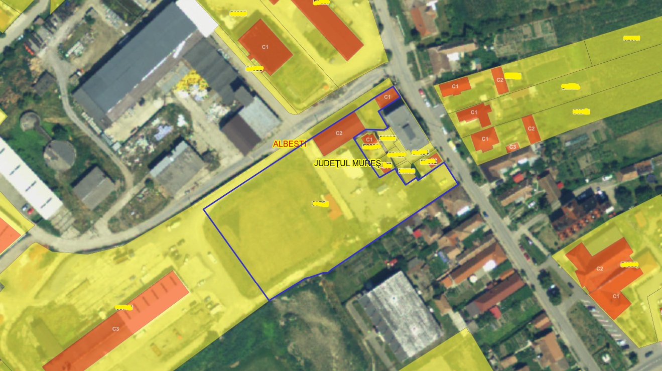 Imobil P+M, punct termic si teren situate in Albesti, str. Florilor, jud. Mures. Zona este rezidentiala mixta, in zona regasindu-se cladiri industriale cat si rezidentiale ( case P, P+1 , bloc P+4)