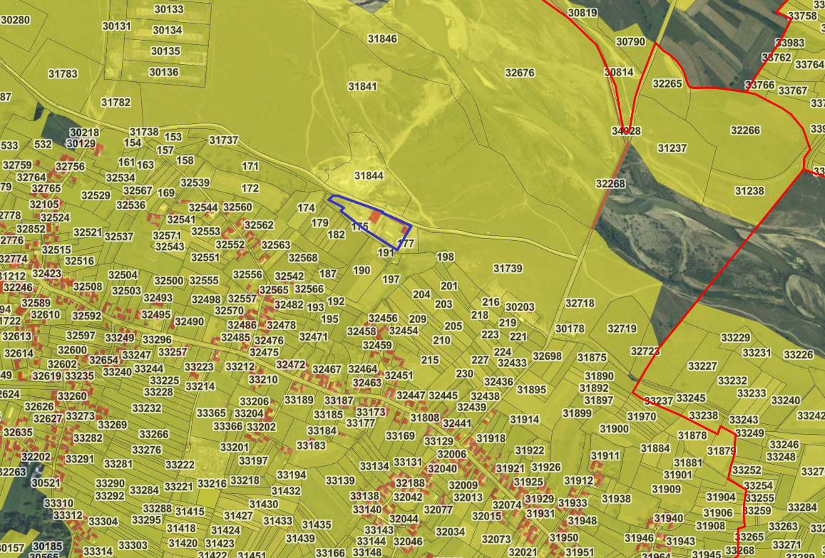 - Teren: intravilan, categoria curți construcții, suprafață 9.355 mp, acces auto și pietonal, deschidere la drum pietruit cca. 202 m