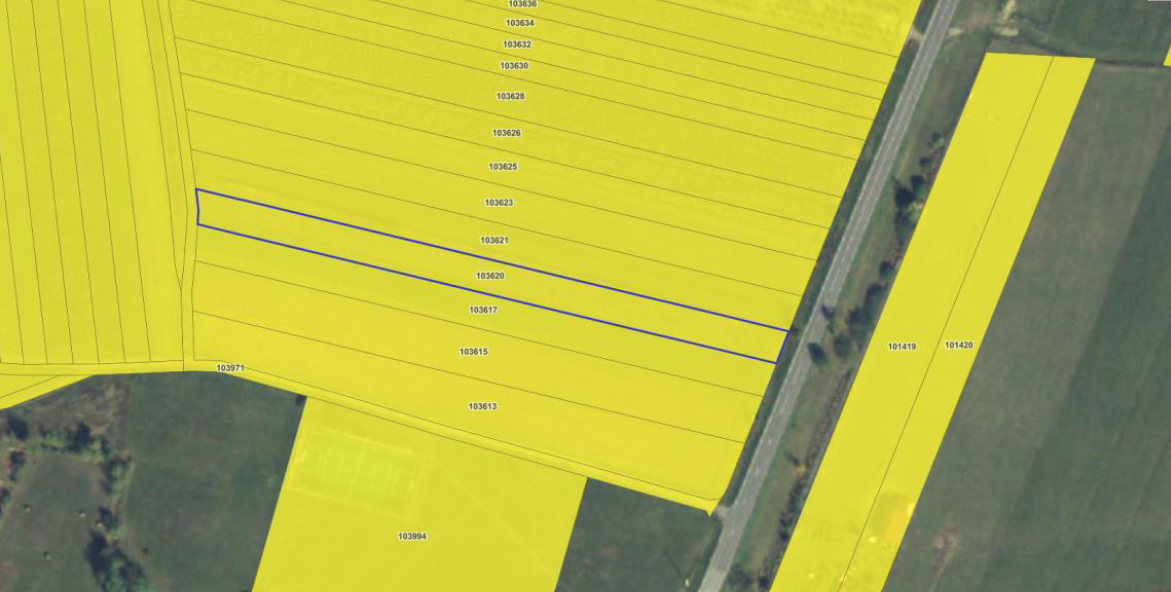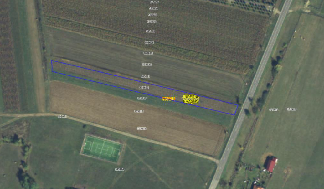 Terenul agricol extravilan are deschidere la DN 1S și acces din drumuri de exploatare adiacente, inclusiv DE cu nr. cadastral 103971 (conform geoportal ANCPI), drum de pământ. Forma terenului este dreptunghiulară regulată, cu deschidere de cca 12,88 m pe latura vestică la DE și cca 12,43 m la DN 1S. În apropiere sunt identificate construcții rezidențiale, ceea ce îl face pretabil pentru trecerea în intravilan. Distanța față de facilități complementare este relativ mică, fiind în proximitatea caselor periferice ale localității.