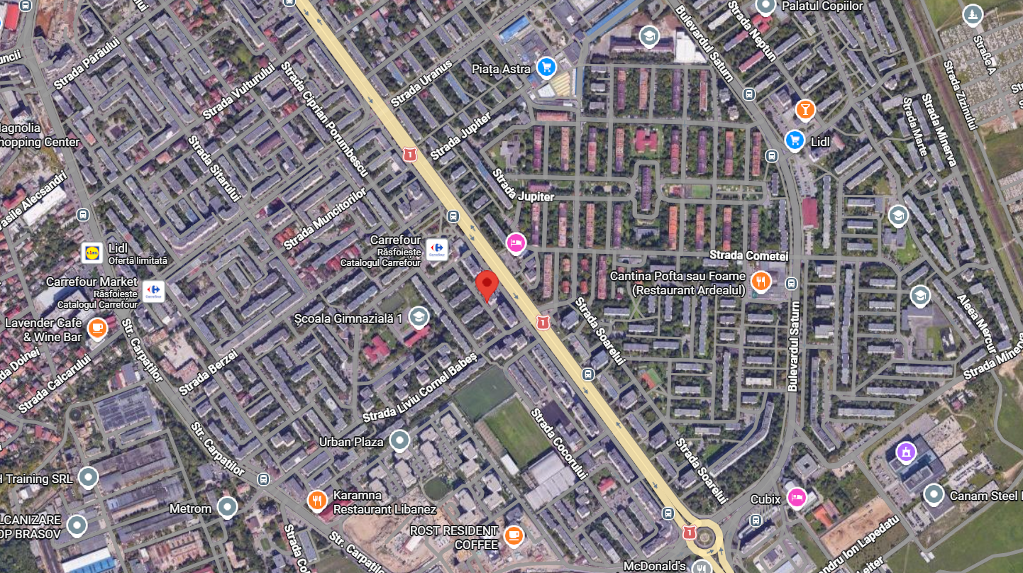 Apartamentul este amplasat într-o zonă foarte bine conectată a Brașovului, cu acces rapid către: