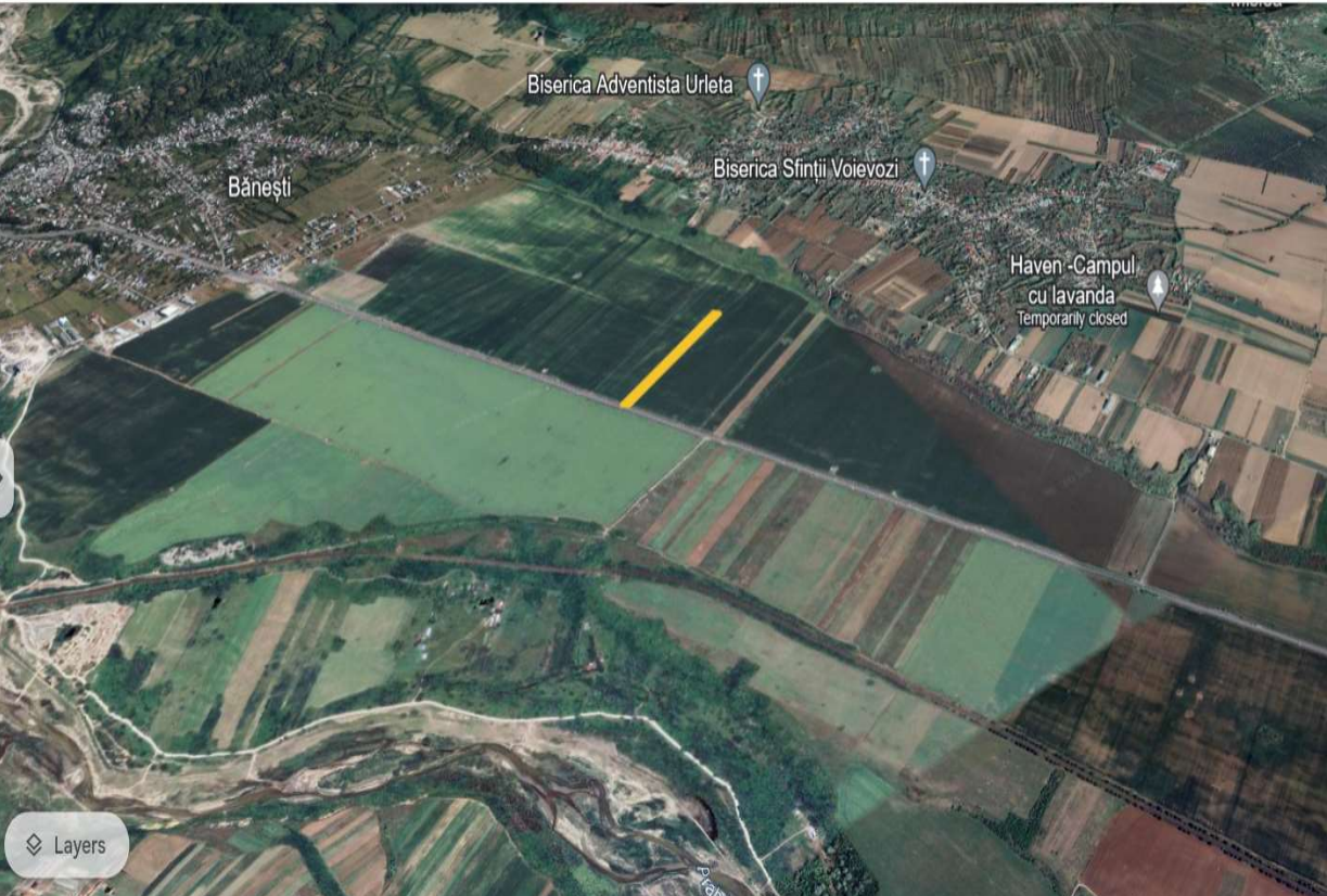 Cota de 1/2 din teren agricol intravilan categoria de folosinta arabil in suprafata de 4.300 mp. situat in intravilanul loc. Banesti Tarla 24/2, Parcela A1009/361, avand deschidere la calea de acces DN1 de 11.65 ml. si la drum de exploatare agricola de 11.78 ml.