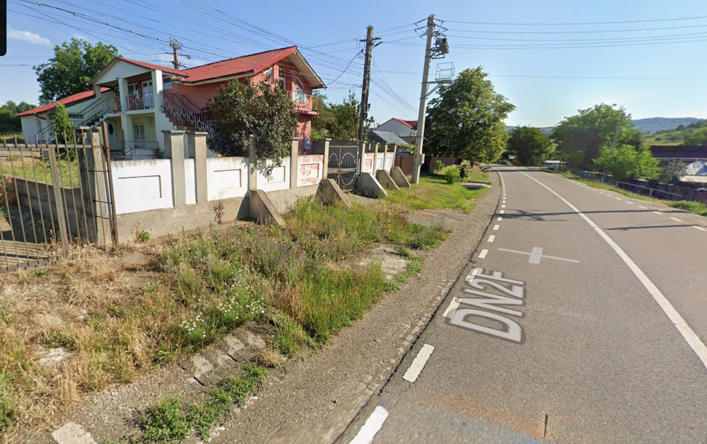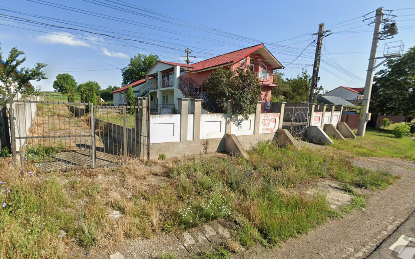 Cota de 1/2 din teren intravilan categoria de folosinta curti constructii, in suprafata de 2.675 mp. imprejmuit cu gard de beton si porti metalice, avand deschidere de aprox. 22 ml. la DN2F drum public asfaltat.