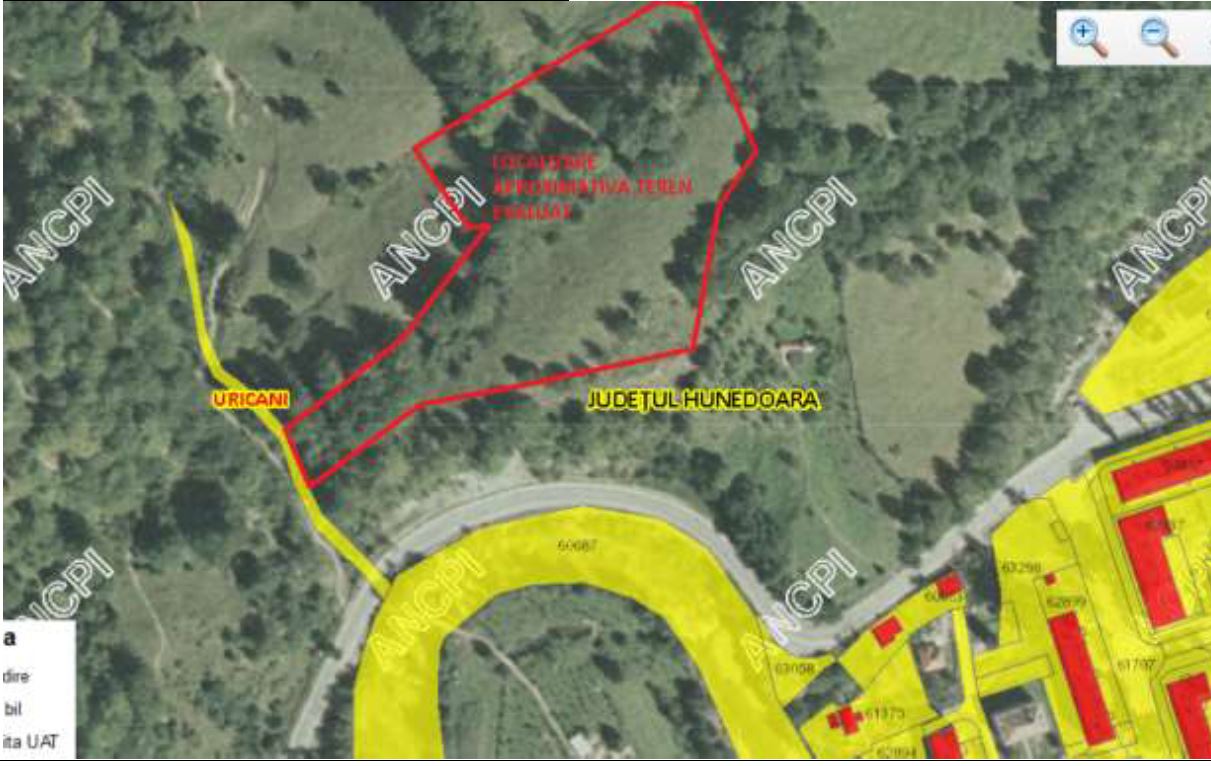 Se vinde o cota de 21/64 din teren agricol extravilan in suprafata de 20307 mp din acte, respectiv 20228 mp din masuratorile cadastrale Situat in Loc. Uricani, jud. Hunedoara, Dupa Pod