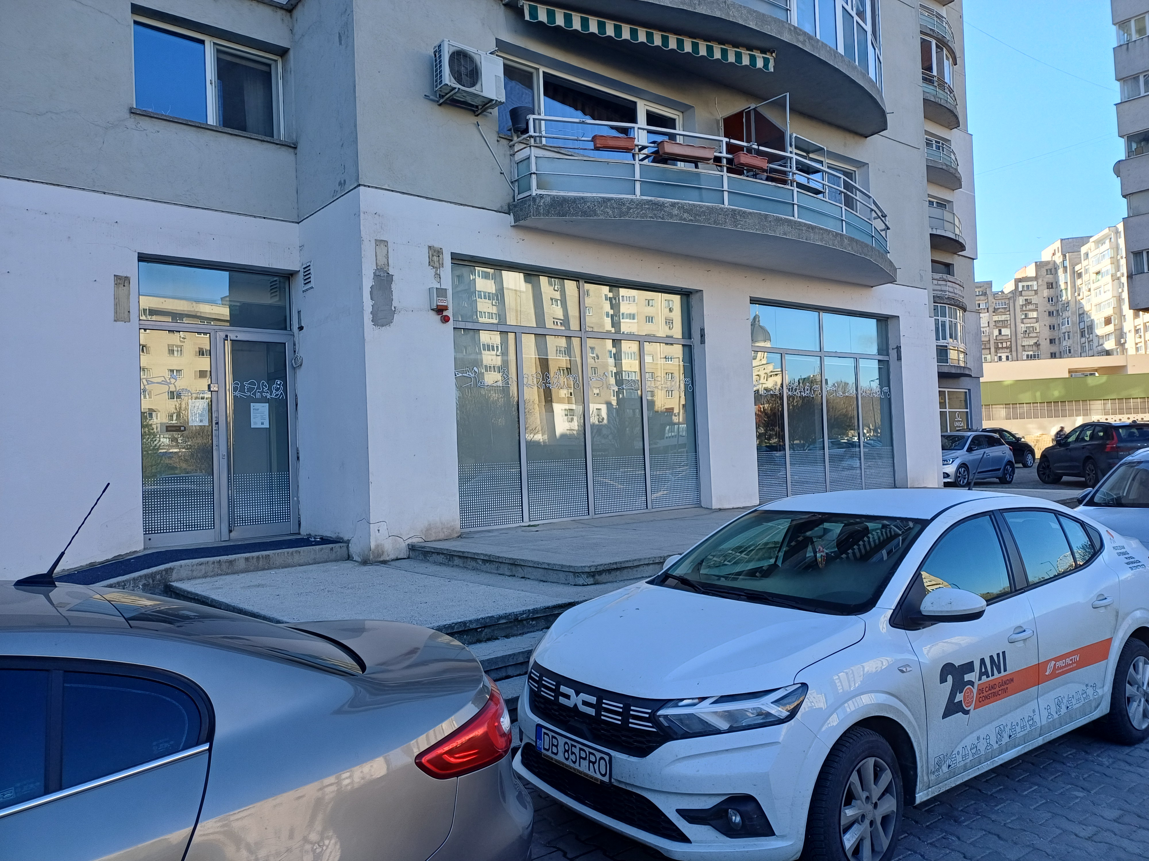 Spațiu comercial situat la parterul unui imobil de locuințe cu regim de înălțime P+8E, cu deschidere stradală și acces pietonal și auto.