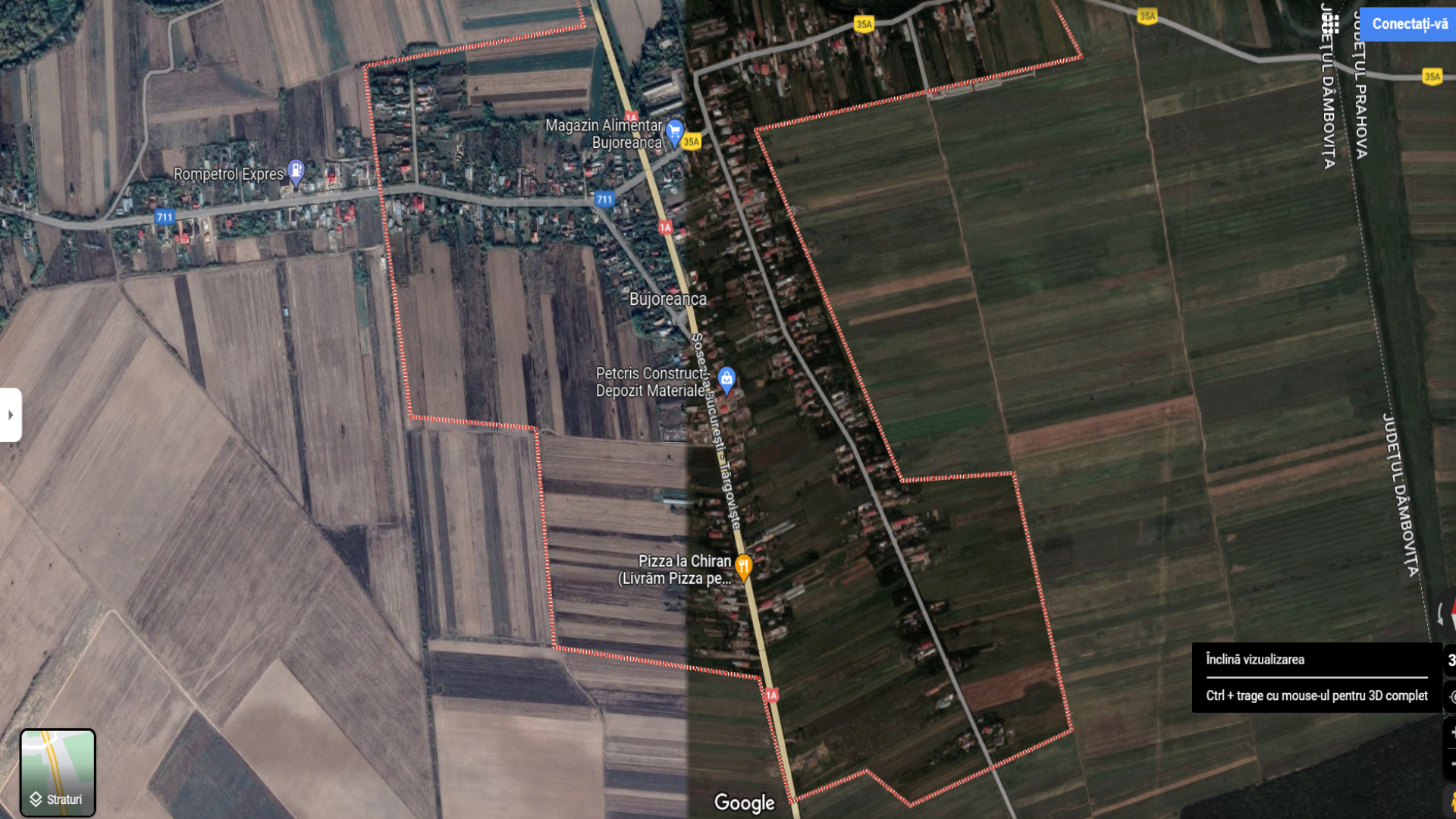 Teren agricol extravilan cu suprafața de 1305 mp, amplasat in zona preponderent agricola a comunei Cornesti, sat Bujoreanca, jud. Dambovita, cu o deschidere de 19 ml la Dn1A.