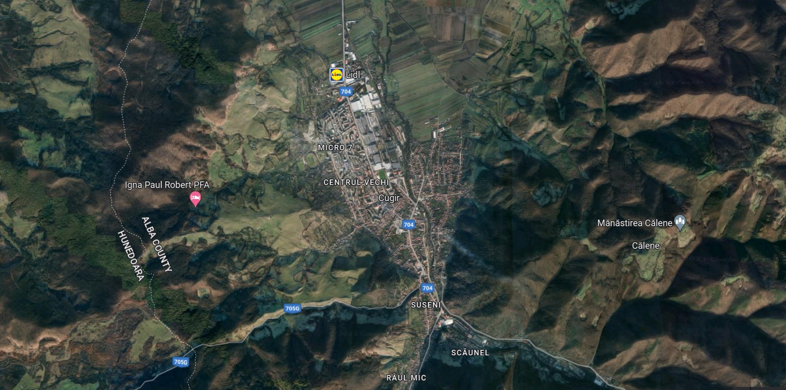 Cugir extravilan Cugir, in dreptul iesirii din com. Vinerea in sensul de mers spre Sibot pe partea dreapta.